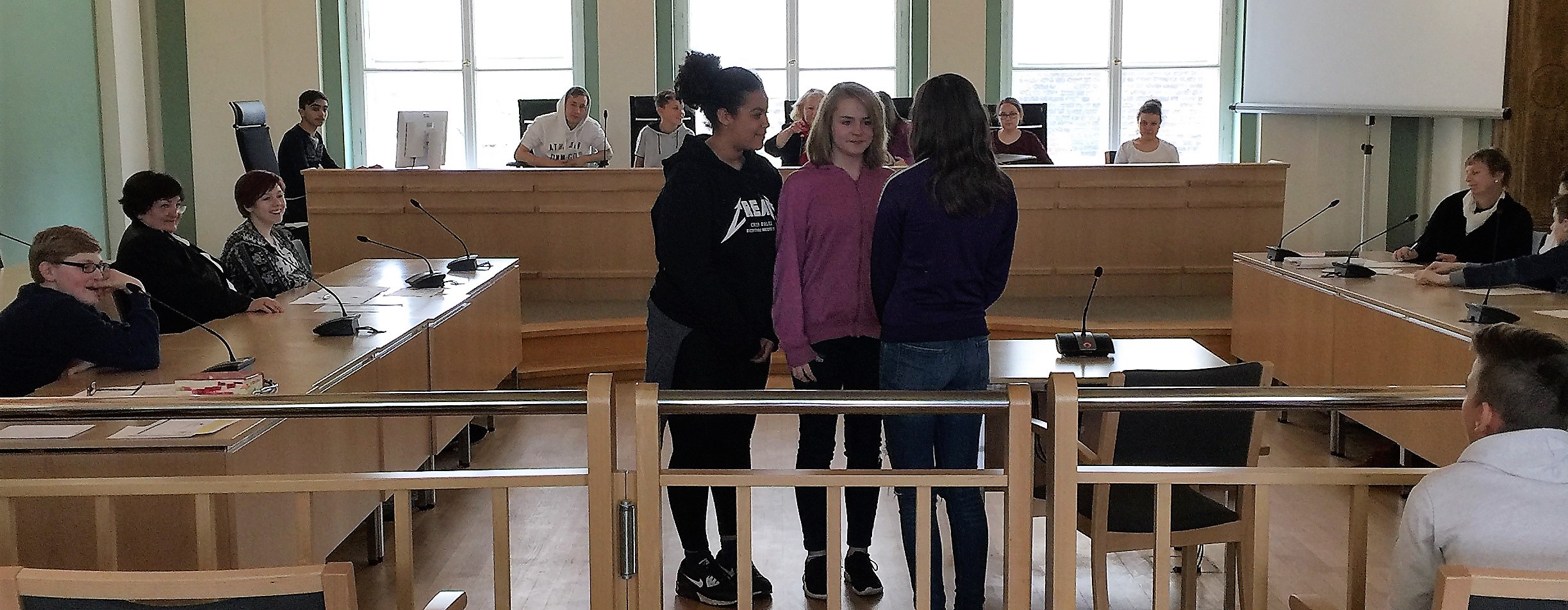 Gespielte Jugendgerichtsverhandlung. Verbotene Feuerwerkskörper.